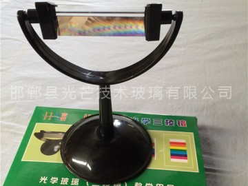 光學(xué)上將橫截面為三角形的透明體叫做三棱鏡,它是由透明材料作成的截面呈三角形的光學(xué)儀器,屬于色散棱鏡的一種,能夠使復(fù)色光在通過棱鏡時發(fā)生色散。光從棱鏡的一個側(cè)面射入,從另一個側(cè)面射出,出射光線將向底面(第三個側(cè)面)偏折,偏折角的大小與棱鏡的折射率,棱鏡的頂角和入射角有關(guān). 白光是由各種單色光組成的復(fù)色光;同一種介質(zhì)對不同色光的折射率不同;不同色光在同一介質(zhì)中傳播的速度不同. 所以,因?yàn)橥环N介質(zhì)對各種單色光的折射率不同,所以通過三棱鏡時,各單色光的偏折角不同。因此,白色光通過三棱鏡會將各單色光分開,形成紅.橙.黃.綠.藍(lán).靛.紫七種色光即色散。 1666年,英國物理學(xué)家牛頓做了一次非常著名的實(shí)驗(yàn),他用三棱鏡將太陽白光分解為紅、橙、黃、綠、藍(lán)、靛、紫的七色色帶。據(jù)牛頓推論:太陽的白光是由七色光混合而成,白光通過三棱鏡的分解叫做色散,彩虹就是許多小水滴為太陽白光的色散,各色波長如下(納米):紅:660 橙:610 黃:570 綠:550 藍(lán):460 靛:440 紫:410